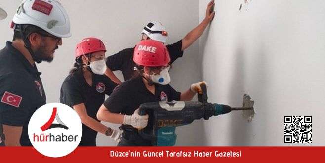 Düzce Arama Kurtarma Ekibi (DAKE) derneğe yeni üye olan gönüllülere yönelik makine ekipman kullanım eğitimi ve acil durum senaryosu eğitimi verildi.DAKE yeni üyelerine yönelik makine ve ekipman kullanım eğitimi verildi. Planlama ve duyurusu önceden yapılan bu eğitimin sonrasında verilen "Kırmızı Alarm" ile, ekip liderlerinin hazırladığı senaryoya uygun olarak ağır hasarlı bir binada arama kurtarma tatbikatı gerçekleştirildi.Durumdan habersiz üyeler tam katılımıyla gerçekleştirilen senaryo başarıyla uygulandı. Eğitime DAKE Düzce ve DAKE Bolu gönüllüleri katıldı.
