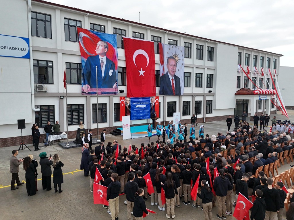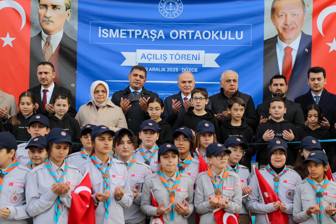 Düzce'de öğrencilerin daha iyi ve güvenli bir alanda eğitim görebilmesi amacıyla şehir merkezinde bulunan İsmetpaşa Ortaokulu'nun yeni taşındığı binası yapılan törenle eğitim öğretime açıldı.