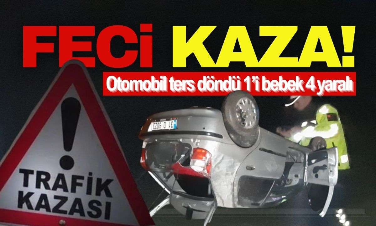 Feci kazada otomobil ters döndü 1’i bebek 4 yaralı