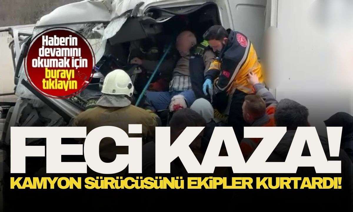 Feci kazada sıkışan kamyon sürücüsünü ekipler kurtardı!