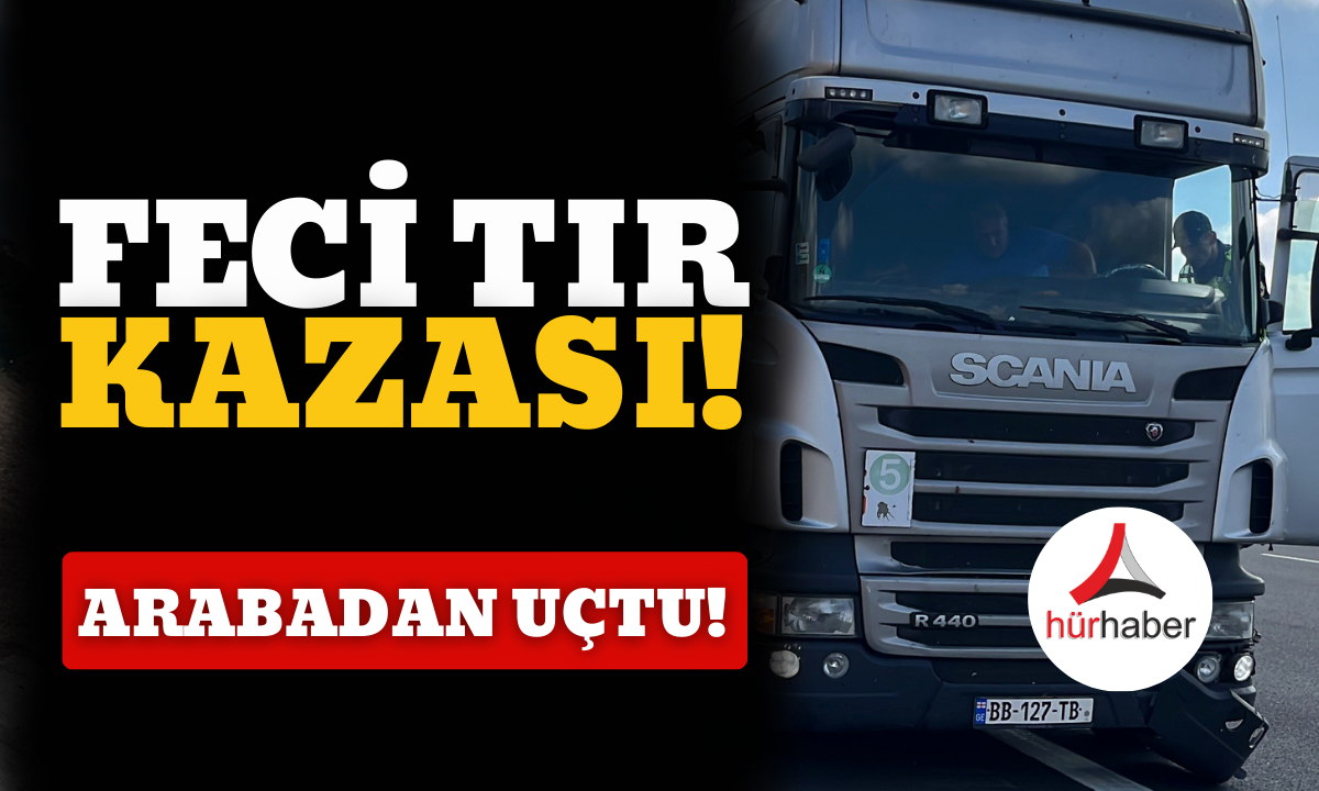 Feci tır kazası arabadan uçtu!