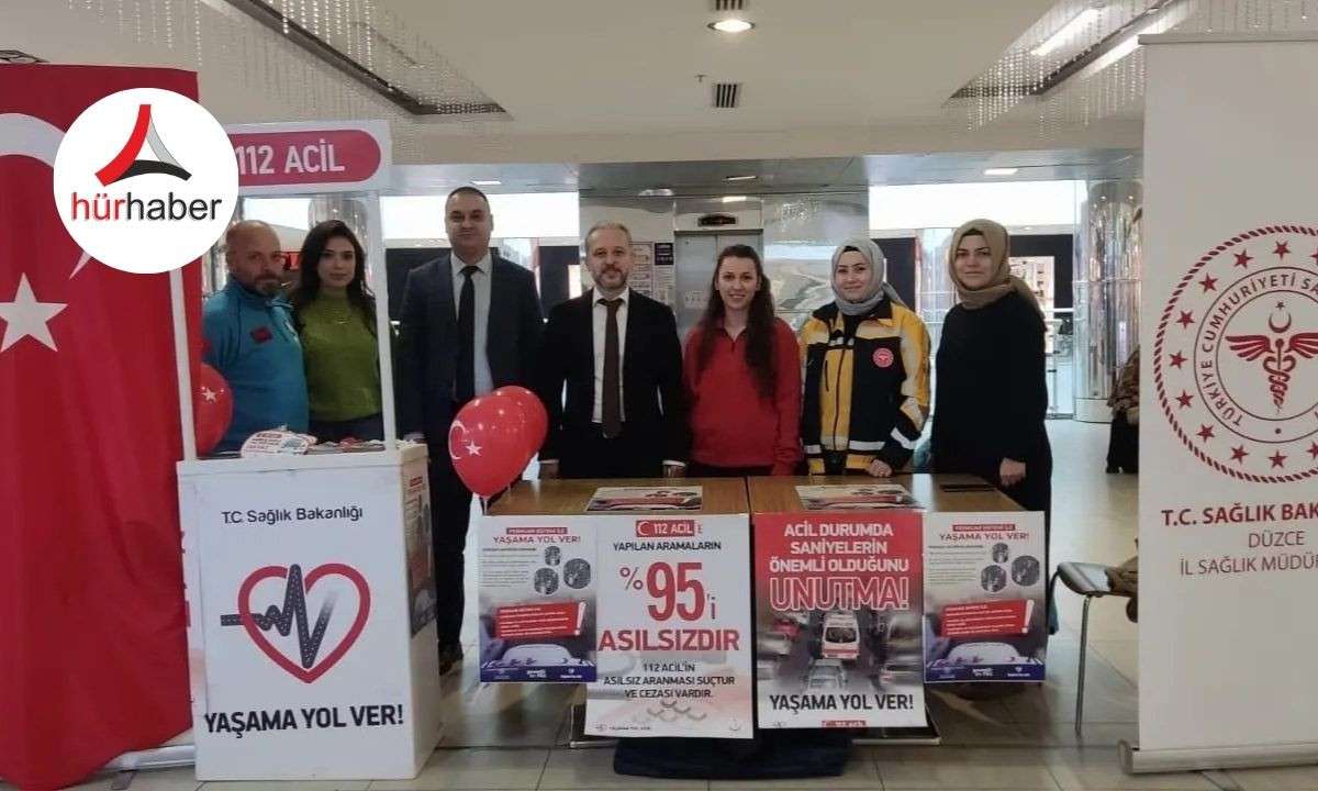 Düzce Sağlık Müdürü Dr. Yasin Yılmaz 1-7 Aralık Acil Sağlık Hizmetleri Haftasında bir alışveriş merkezinde Fermuar Sistemi ile Yaşama Yol Ver teması ile açılan farkındalık standını ziyaret etti.