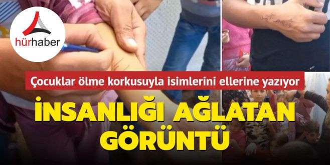 İsrail'in vurduğu Gazze Şeridi'nde yürek yakan sahneler yaşanıyor. Abluka altındaki Gazze'de aileler, İsrail saldırıları sonrasında yaralanan, hayatını kaybeden çocuklarını tanıyabilmek için kollarına isimlerini yazıyor.