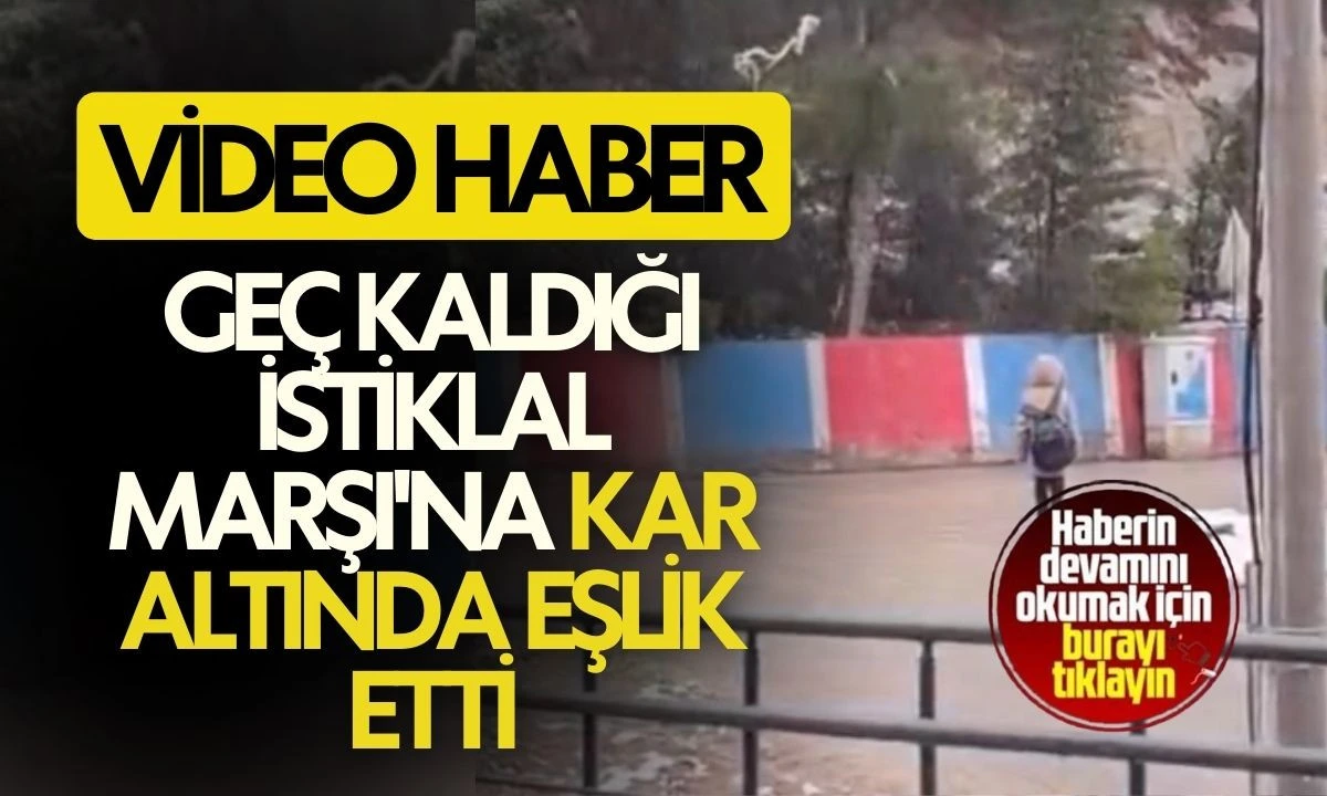 Geç kaldığı İstiklal Marşı'na kar altında eşlik etti