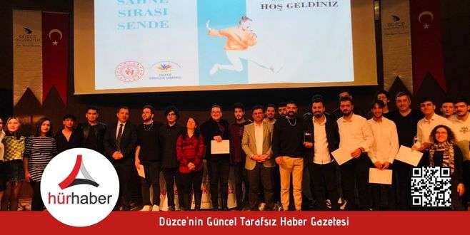 Düzce'de "Sahne Sırası Sahne" yarışmasının finali gerçekleştirildi.Gençlik ve Spor Bakanlığı tarafından başlatılan "Sahne Sırası Sende" yarışmasının Düzce il finali yapıldı. Gençlik ve Spor İl Müdürlüğü'nün konferans salonunda düzenlenen programda gençler yarıştı. Gençlerin yoğun ilgi gösterdiği finallerde dereceye girenlere ödüllerini Gençlik ve Spor İl Müdürü İsa Yazıcı teslim etti. Derece elde eden gençler, Karadeniz bölge finaline giderek Düzce’yi temsil edecek.