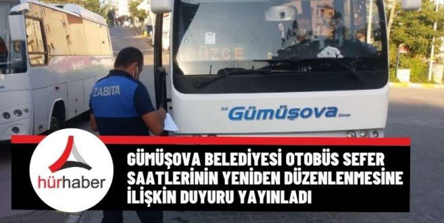 Düzce'nin Gümüşova ilçesinde Kontrollü normalleşme süreci kapsamında; 17.05.2021 – 01.06.2021 tarihleri arasında Gümüşova, Düzce hattında yolcu taşıma faaliyeti gösteren halk otobüslerinin sefer saatleri yeniden düzenleme yapıldığını duyurdu.