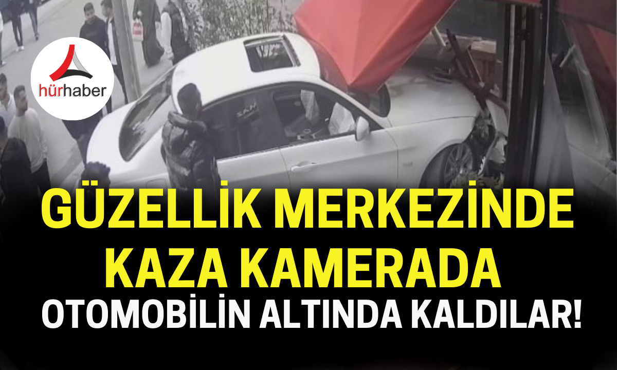 Güzellik merkezinde kaza kamerada otomobilin altında kaldılar!