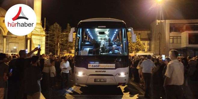 Düzce'den hacca gidecek 45 kişilik grup Cedidiye Cami önünden kutsal topraklara uğurlandı.