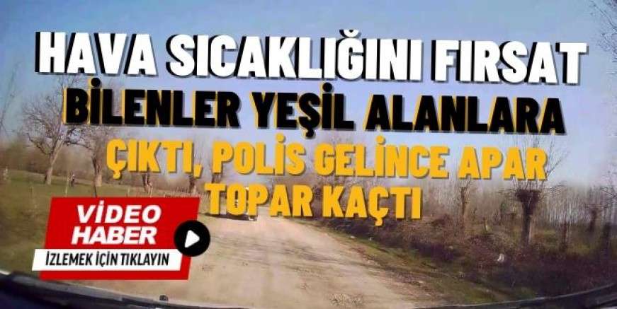 Hava sıcaklığını fırsat bilenler yeşil alanlara çıktı, polis gelince apar topar kaçtı