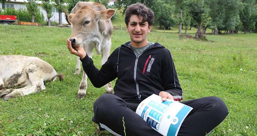 Artvin'in Ardanuç ilçesi Güreş köyünde besicilik yapan Coşkun Kara'nın 15 yaşındaki lise ikinci sınıf öğrencisi Oğuzhan Kara, yaz tatilini ders çalışıp, aynı zamanda besicilik yaparak değerlendiriyor.