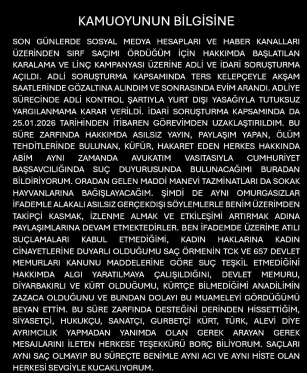 Açıklamada, söz konusu paylaşımlar nedeniyle ilgili personel hakkında adli ve idari sürecin başlatıldığı, konunun yakından takip edildiği ifade edildi.