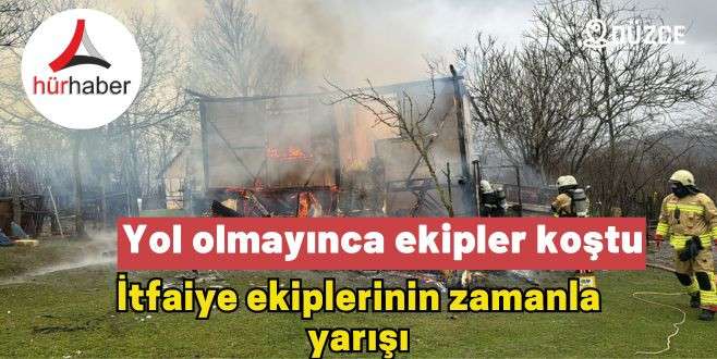 Evden alevlerin yükseldiğini gören köylüler, durumu Düzce Belediyesi İtfaiye Müdürlüğü’ne bildirdi.