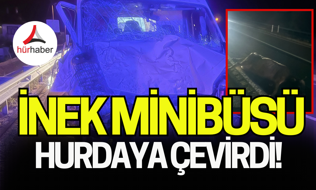 İnek minibüsü hurdaya çevirdi 4 yaralı var!