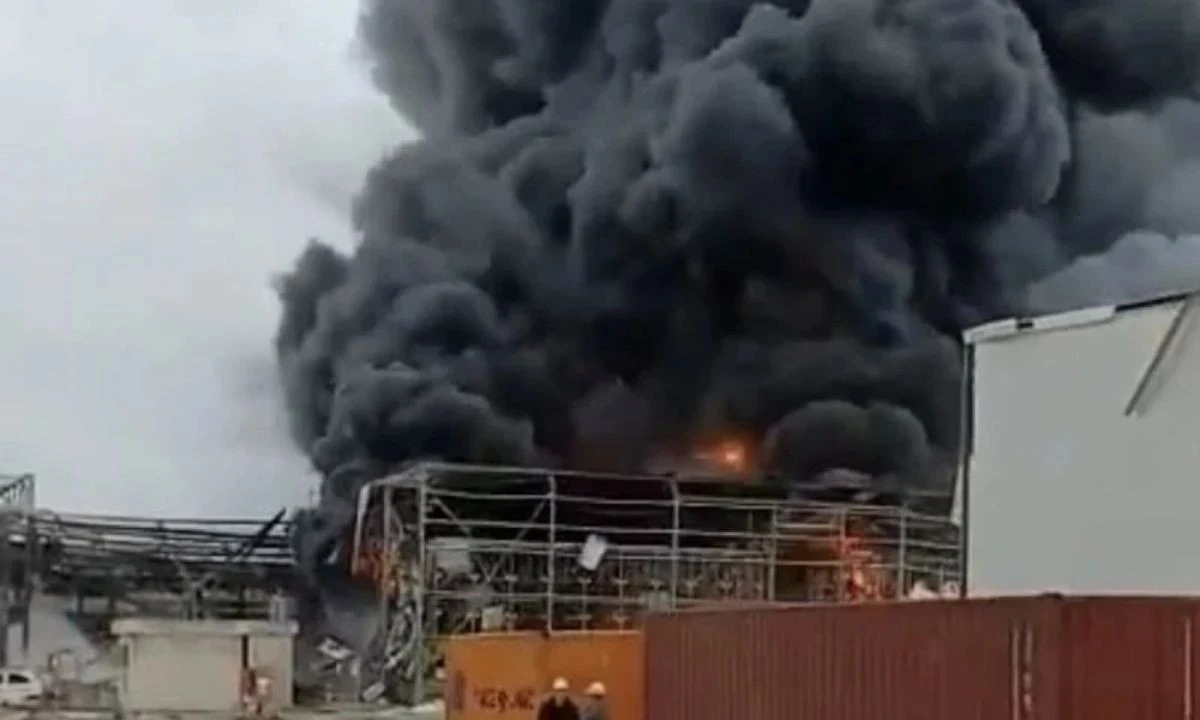 Medyaya yansıyan görüntülerde endüstriyel tesislerin bulunduğu alanın alevler içinde kaldığı görüldü.
