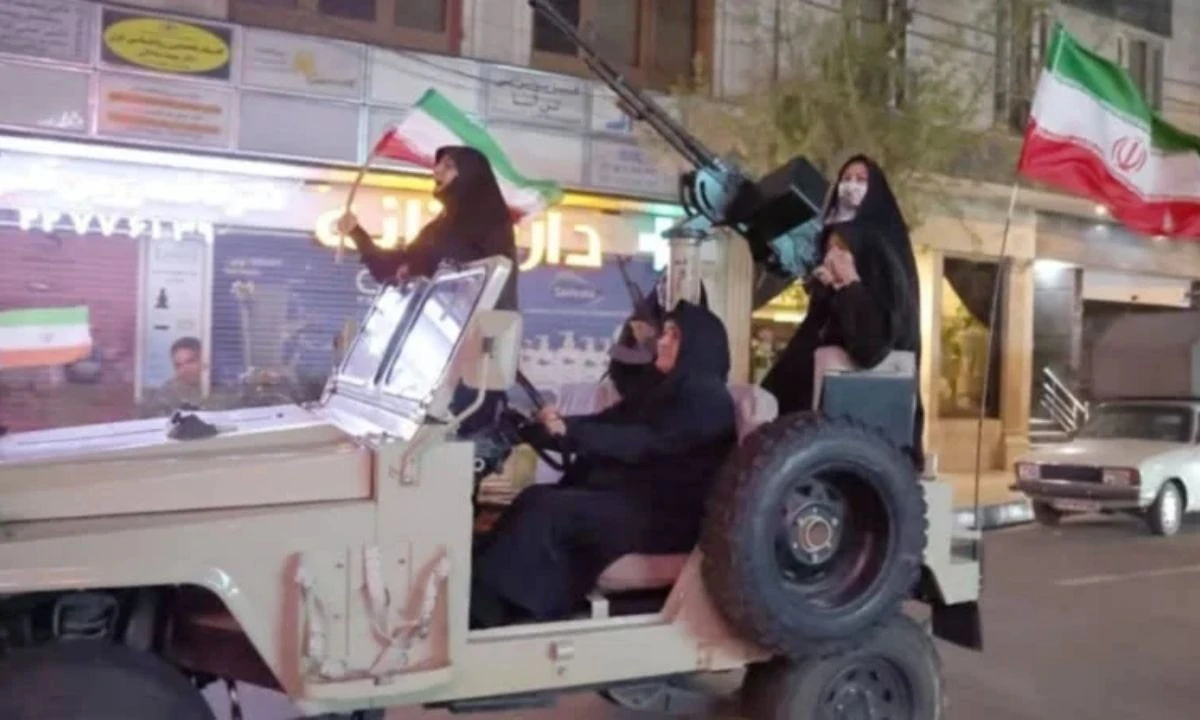 Birçok İranlı, sosyal medyadan kadınların silahlarla araba üzerinden geçtiğim fotoğraf karelerini paylaştı.