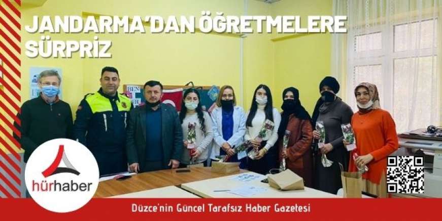 Düzce’de jandarma ekipleri 24 Kasım Öğretmenler Günü dolayısıyla okullara giderek öğretmenlerin gününü çiçek vererek kutladı.Düzce İl Jandarma Komutanlığına bağlı ilçe jandarma komutanlıkları ve Trafik Şube Müdürlüğüne bağlı Trafik Timleri, 24 Kasım öğretmenler gününü unutmadı.Jandarma ekipleri okulları ziyaret ederek öğretmenlere sürpriz yaptılar.