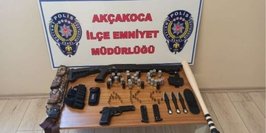 Akçakoca'da 12 Kasım'da meydana gelen olayda Beşyol mevkiinde park halindeki otomobile çarparak kaçan şahıs, İlçe Emniyet Müdürlüğü ekipleri Akçakoca Cumhuriyet Başsavcılığı koordinesinde çalışma başlattı. Yapılan çalışmalar sonucunda şüpheli şahsın eşgalini tespit eden ekipler şüpheliyi kısa sürede yakaladı. Şüpheli şahsın üzerinde ve aracında yapılan aramalarda 1 adet ruhsatsız tabanca, 2 adet şarjör, 1 adet ruhsatsız av tüfeği, 33 adet tabanca mermisi, 33 adet av tüfeği mermisi, 3 adet bıçak ele geçirildi.