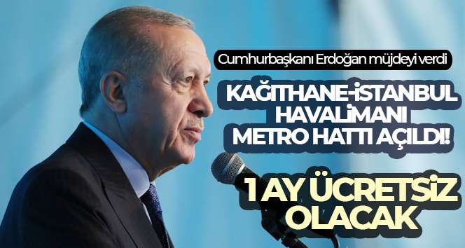 Cumhurbaşkanı Erdoğan, Kağıthane-İstanbul Havalimanı Metrosunun 1 ay boyunca ücretsiz hizmet vereceğini duyurdu.
