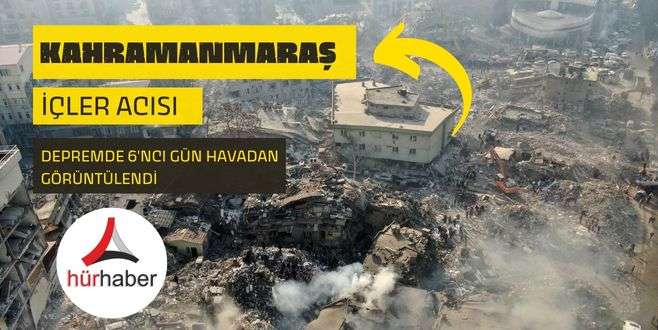 Kahramanmaraş'ta meydana gelen depremde 6'ncı güne girilirken, enkaza dönen şehir merkezindeki son durum dron ile havadan görüntülendi.Kahramanmaraş merkezli 10 ili derinden etkileyen deprem Türkiye'yi yasa boğdu. Kahramanmaraş başta olmak üzere tüm illerde çöken binalarda mahsur kalan vatandaşları kurtarmak için ekipler ilk andan itibaren yoğun çaba harcadı. Çalışmaların halen aralıksız devam ettiği illerden depremin merkezi Kahramanmaraş'ta son durum ise havadan görüntülendi. Dron ile binaların enkazlarının yer adlığı görüntüler şehrin yaşadığı büyük yıkımı gözler önüne serdi.Bir çok yeri toz bulutu kaplarken, 6'ıncı günde de herkese umut olacak bir ses için ekipler çalışmasına devam ediyor.