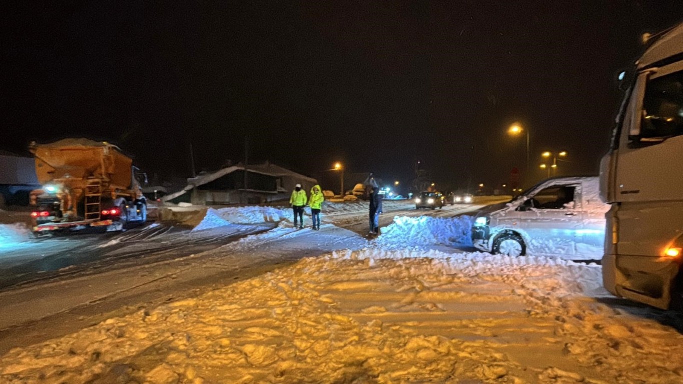 Karayolları ekipleri güzergahta kar küreme ve tuzlama çalışmalarını aralıksız sürdürürken, polis ekipleri de denetimlerini sıklaştırdı.