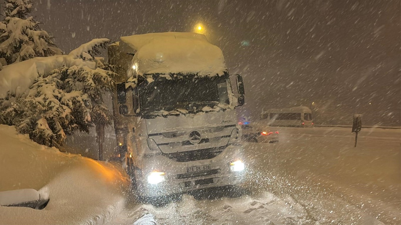 Yoğun kar yağışı ve buzlanma riski nedeniyle D-100 kara yolu Bolu Dağı geçişi, İstanbul ve Ankara yönlerinde ağır tonajlı araçların trafiğine kapatıldı.