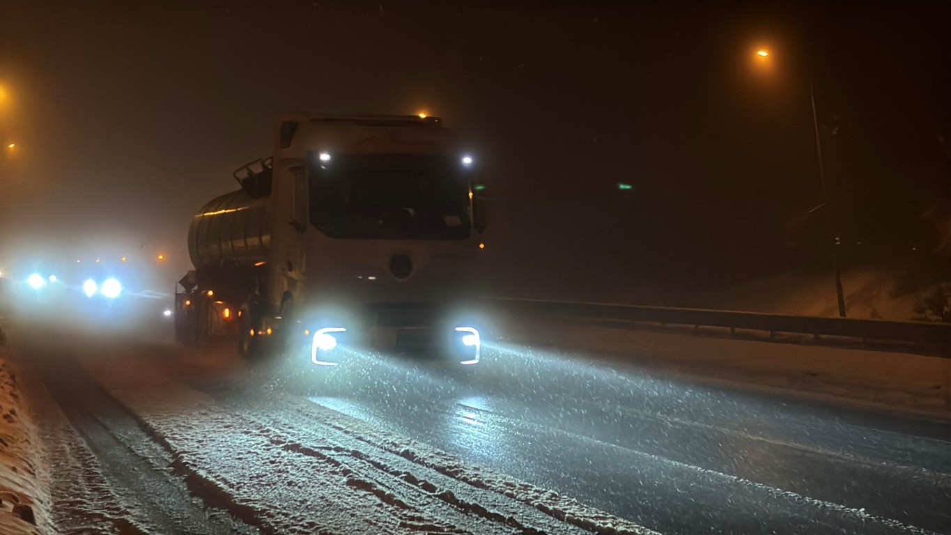 Trafik ekipleri ise sürücüleri, kış lastiği olmadan yola çıkmamaları, yakın takip ve aşırı hızdan kaçınmaları konusunda uyarıyor.