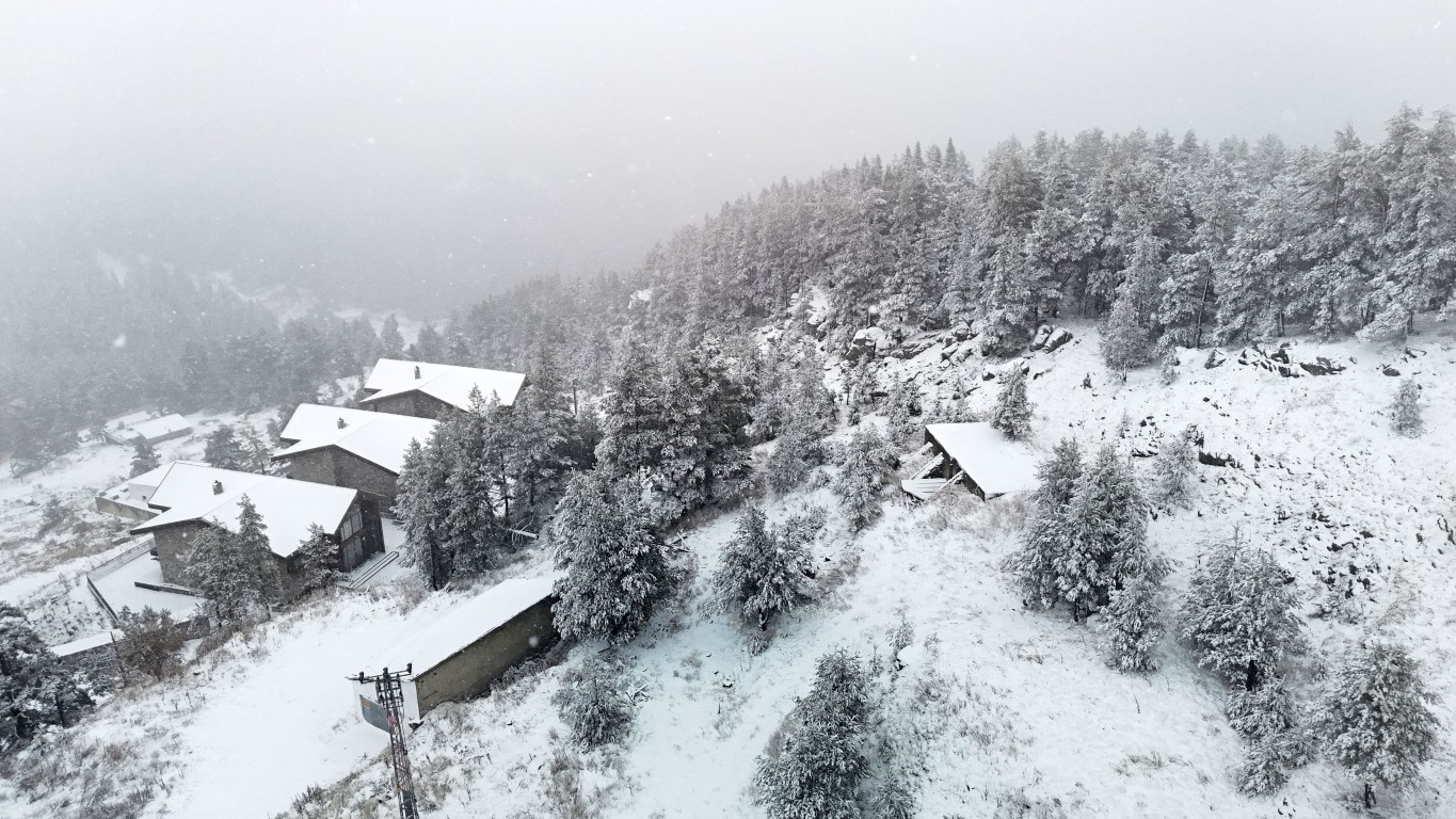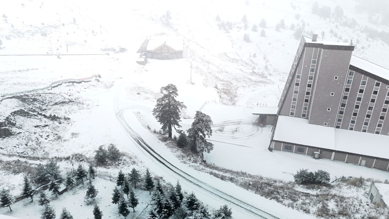 Sabah saatlerinden itibaren etkili olan kar yağışı sebebiyle yeşil alanlarda kar kalınlığı 5 santimetrenin üzerine çıktı. Beyaz örtüyle kaplanan Kartalkaya bölgesi havadan dronla görüntülendi.