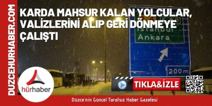 Yoğun kar yağışışı Türkiye’nin en önemli karayolu geçişi olan Bolu Dağı’nı trafiğe kapattı, onlarca yolcu otobüsü D-100 üzerinde beklemek zorunda kaldı. Otobüste beklemekten sıkılan yolcular ise yürüyerek zamanı geçirmeye çalıştı. Yolun açılmasından umudunu kesen bazı yolcular otobüslerden valizlerini alarak, İstanbul istikametine geri dönmek istedi.