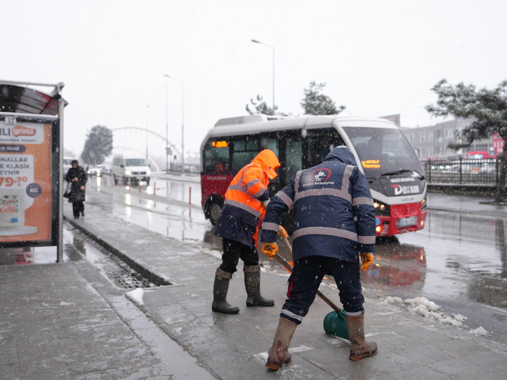 Bu kapsamda belediye bünyesinde oluşturulan kar timleri, özellikle yaya kaldırımları ve otobüs duraklarında temizlik çalışmalarını yoğunlaştırdı.Vatandaşların günlük yaşamlarının aksamaması ve güvenli ulaşımın sağlanması amacıyla sahada görev yapan ekipler, kar birikintilerinin temizlenmesi ve buzlanmaya karşı önlem alınması için çalışmalarına devam ediyor.