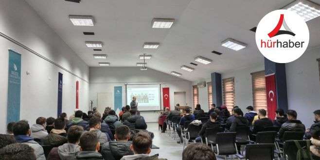 Düzce Meslek Yüksekokulu Konferans Salonu’nda gerçekleşen söyleşide ADT Elastomer firması İnsan Kaynakları Yöneticisi Mustafa Yağcı ve Bakım Onarım Yönetmeni Selçuk Göre; firmanın tanıtımı, üretim aşamaları ve insan kaynakları süreçleri hakkında bilgiler paylaştı. Düzce MYO öğrencilerinin teorik bilgilerinin pratikteki uygulamalarla desteklenmesi, iş hayatına hazırlanmalarının sağlanması, gelecekteki kariyer planlarının şekillenmesine katkı sunulması amacıyla düzenlenen program sonunda, nitelikli teknikerler yetiştirilmesi ve ortak projelerin geliştirilmesi amacıyla iş birliği yapılması da kararlaştırıldı.Katılımcılardan gelen soruların da cevaplandığı etkinlik, Düzce Meslek Yüksekokulu Müdür Yardımcısı Dr. Öğretim Üyesi Zafer Cingiz tarafından Selçuk Göre’ye ve Mustafa Yağcı’ya teşekkür belgesi takdim edilmesiyle sona erdi.
