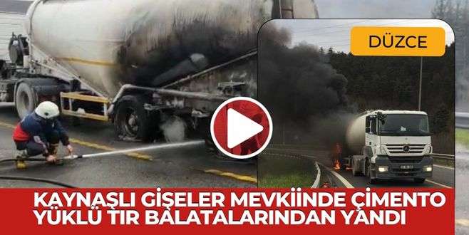 Düzce’de çimento yüklü tır balatalarından tutuşarak alev aldı. Akaryakıt deposu yakınında meydana gelen yangın ekiplerin dikkati sayesinde kısa sürede söndürüldü.