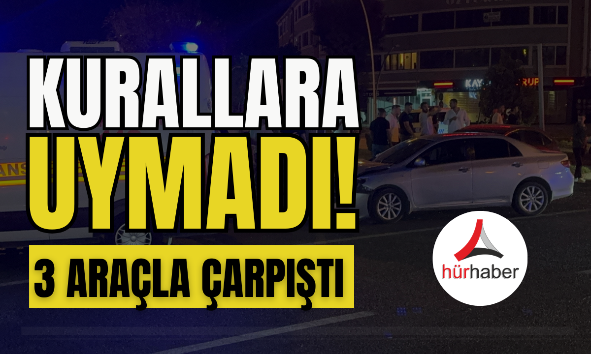 Düzce’de kırmızı ışıkta geçen otomobil, 2 araca çarptı. Kazada 3 kişi yaralandı.
