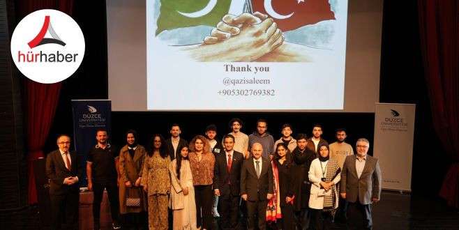 İstiklal Konferans Salonu’nda program öncesinde Düzce Üniversitesi Rektörü Prof. Dr. Nedim Sözbir’i ziyaret eden Qazi Saleem Ahmed Khan, Rektör Sözbir’le görüşme gerçekleştirdi. Daha sonra “ Türkiye Pakistan İlişkileri” adlı programa geçildi.Programın açılış konuşmasını gerçekleştiren Düzce Üniversitesi Uluslararası Ofis Koordinatörü Doç. Dr. Sibel Bayram, Pakistan Elçiliği Müsteşarı Qazi Saleem Ahmed Khan’a davetlerini kabul ederek Düzce Üniversitesi’ne geldiği için teşekkür etti. Ülkemizin, Pakistan’ı resmi olarak tanıyan ülkelerin başında geldiğini belirten Doç. Dr. Sibel Bayram, her iki ülke arasındaki ziyaretler ve anlaşmalarla bu dostluk ilişkisinin daha da güçlendiğini ifade etti. Geçmişten günümüze iki ülkenin tarihi ilişkilerinden söz eden Doç. Dr. Bayram, iş birliğini daha da geliştirmek istediklerini söyledi.Düzce Üniversitesi Rektörü Prof. Dr. Nedim Sözbir, “ Türkiye Pakistan İlişkileri” programına katılım sağladığı için Pakistan Elçiliği Müsteşarı Qazi Saleem Ahmed Khan’a teşekkür ederek sözlerine başladı. Üniversite olarak Pakistan Büyükelçiliği’ni ziyaret ettiklerini dile getiren Sözbir, iyi bir köprü kurarak ilişkileri geliştirmek ve öğrenci sayısını artırmak istediklerinin altını çizdi. Proje üretimi ve birlikte program düzenleme gibi birçok noktada ortak çalışmanın önemi üzerinde duran Sözbir, programın hayırlı olmasını temenni etti.Konuşmasını yapmak üzere kürsüye davet edilen Pakistan Elçiliği Müsteşarı Qazi Saleem Ahmed Khan, çok değerli bir konuda program düzenlendiğini ifade ederek, her iki ülke arasındaki tarihi mirasın yüz yıllara dayandığını belirtti. Ortak din ve inanca sahip Pakistan ve Türkiye için en iyi tanımın “Bir Millet İki Devlet” olduğunu söyleyen Qazi Saleem Ahmed Khan, kalpten kalbe bir ilişkisi olan iki ülkenin bayraklarındaki ay yıldız sembolünün de aynı olduğunu sözlerine ekledi. İki ülkenin en zor zamanlarında birbirine yardımcı ve destek olduğuna işaret eden konuk Müsteşar; ekonomik ve sosyal bağların daha da güçlendiğini, Türkiye ve Pakistan üniversiteleri arasındaki ilişkilerin de geliştirilmesinin önemini dile getirerek programın düzenlemesinde emeği olan herkese teşekkür etti.“ Türkiye Pakistan İlişkileri” adlı program, Düzce Üniversitesi Rektörü Prof. Dr. Nedim Sözbir tarafından Pakistan Elçiliği Müsteşarı Qazi Saleem Ahmed Khan’a hediye takdimiyle son buldu.