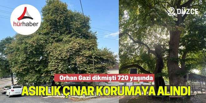 Düzce’nin Beçi Yörükler köyü sınırları içerisinde bulunan ve yaşı 720 olarak hesaplanan dev çınar ağacı, Kültür ve Turizm Bakanlığı tarafından koruma altına alındı. Yıllar önce yıldırım düşen dev çınar ağacı ortadan ikiye ayrılması ile Türkiye’nin tek 1 kök 2 ağaç olma özelliğini ele geçirdi. 1303 yılında Osmanlı İmparatorluğu’nun ikinci padişahı Orhan Bey’in İpek yolu üzerinde askerleri ile dere yatağına gelip kendi elleri ile diktiği çınar ağacı, 720 yıl sonra Kültür ve Turizm Bakanlığı tarafından resmen koruma altına alındı.