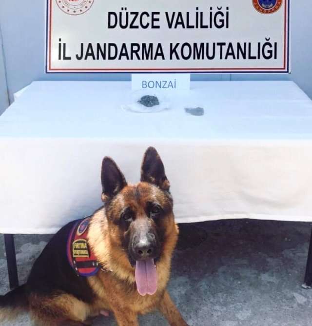 Düzce İl Jandarma Komutanlığı ve Cumayeri ilçe Jandarma Komutanlığı ekipleri, D-100 karayolu üzerinde rutin yol kontrolü esnasında şüpheli bir aracı durdurdu. Araç ve araçta yolcu olarak bulunan kişiler üzerinde arama çalışması yapıldı. Yapılan arama da araçta yolcu olarak bulunan F.K.'nın yapılan üst aramasında 25 gram bonzai maddesi tespit edildi. Ayakkabının altına sakladığı uyuşturucu maddeyi dedektör köpeği koku alarak bulurken, daha önceden de aramasının olduğunu tespit edilen şahıs ekipler tarafından gözaltına alındı. - DÜZCE