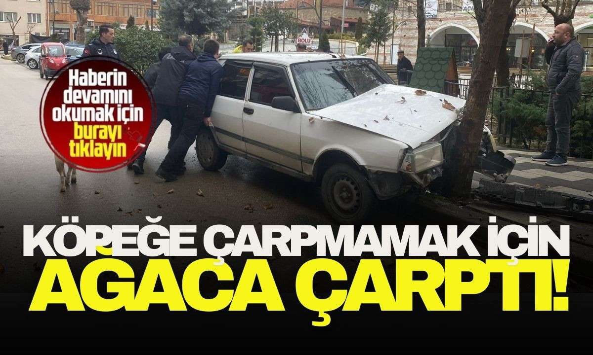 Bolu'da önüne çıkan köpeğe çarpmamak için manevra yapan otomobil, ağaca çarptı.