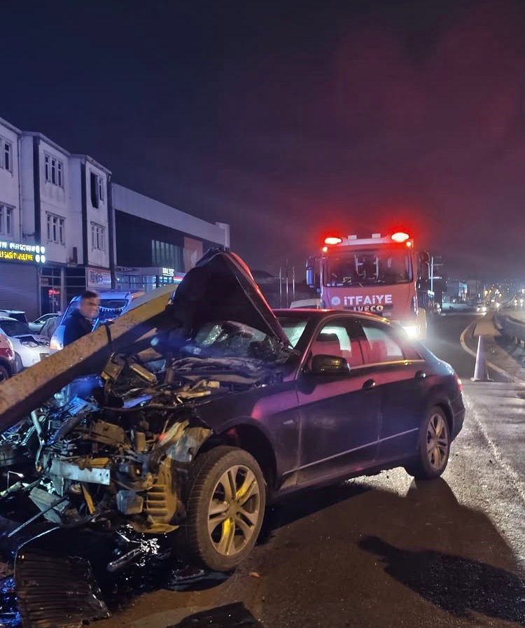 Edinilen bilgilere göre, yan yoldan D130 Karayolu'na bağlanmaya çalışan 34 BG 6900 plakalı Mercedes marka otomobil, sürücüsünün direksiyon hakimiyetini kaybetmesi sonucu bariyerlere çarptı.