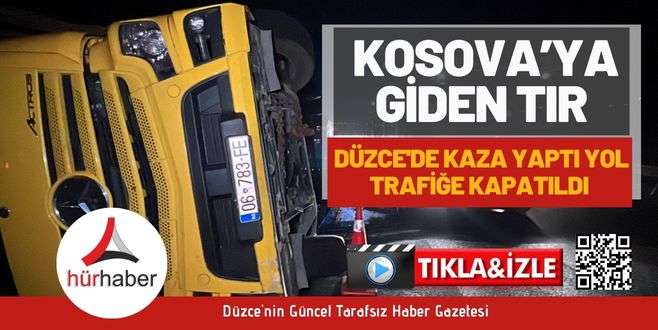 Kosova’ya giden tır Düzce'de kaza yaptı yol trafiğe kapatıldı Düzce, Asayiş Haberler Düzce Hür Haber