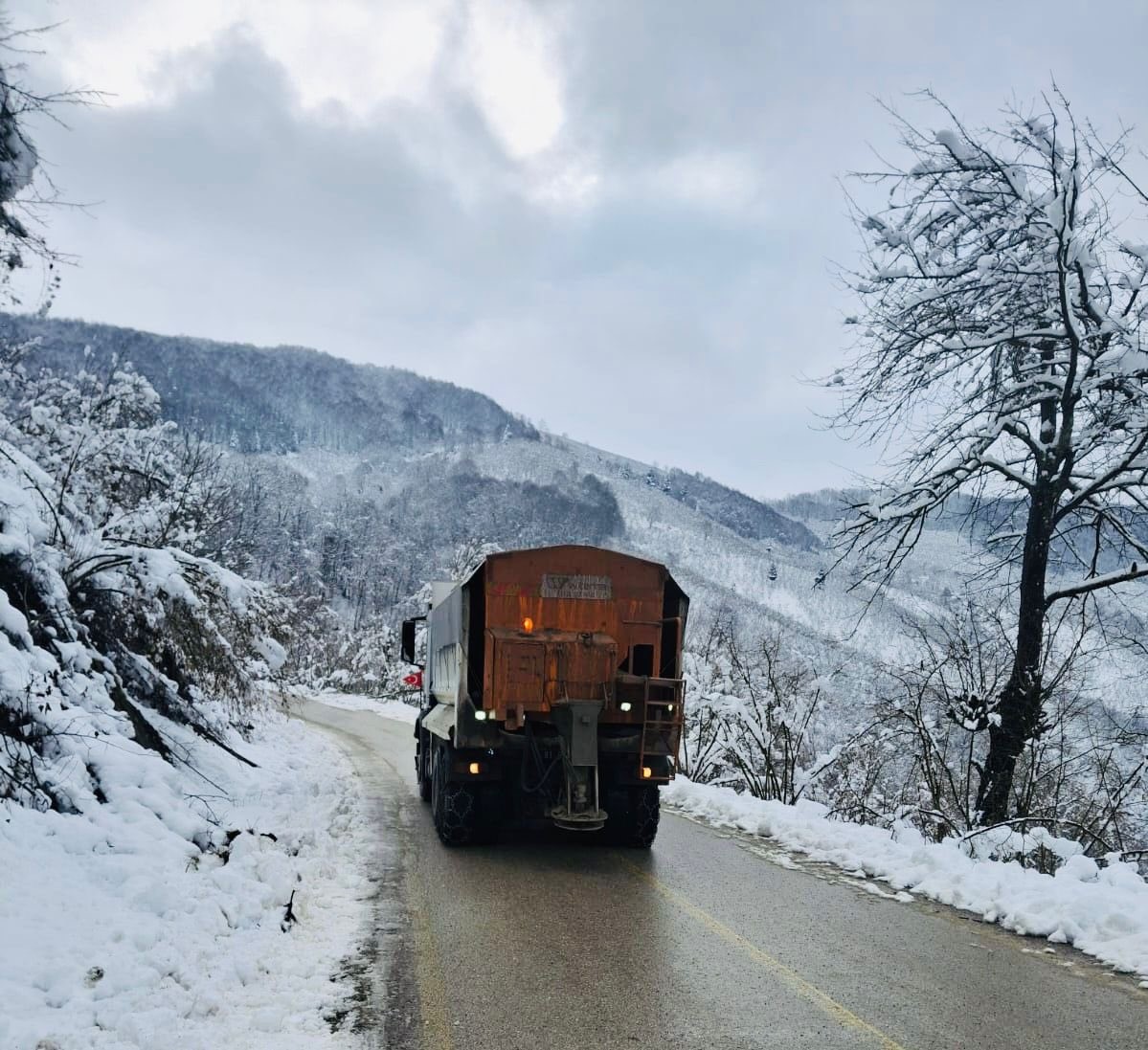 Düzce İl Özel İdaresi ekipleri, etkili olan kar yağışının ardından ulaşıma açılan köylerin ana yollarında oluşabilecek buzlanmalara karşı tuzlama çalışmalarını sürdürüyor.