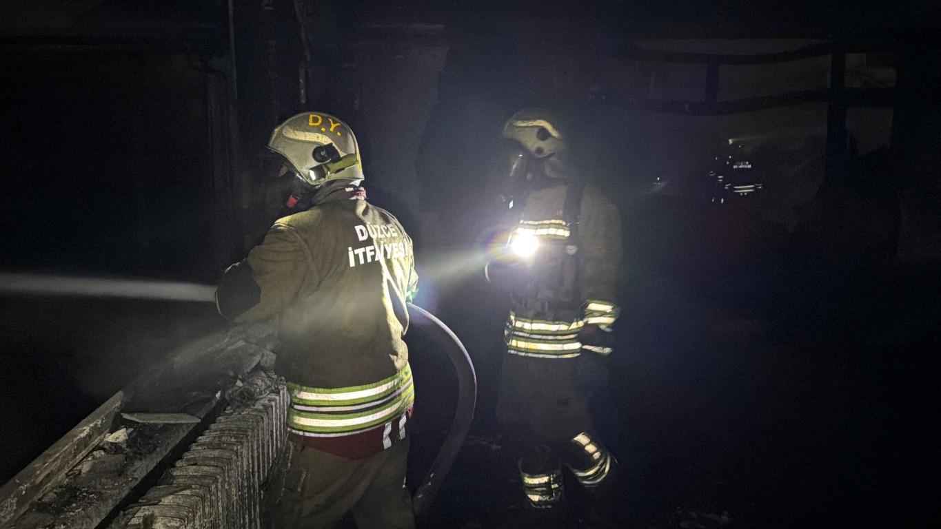 Düzce'de bir strafor fabrikasında çıkan yangın, ekiplerin yaklaşık 2,5 saat süren yoğun müdahalesi sonucu kontrol altına alınarak söndürüldü.