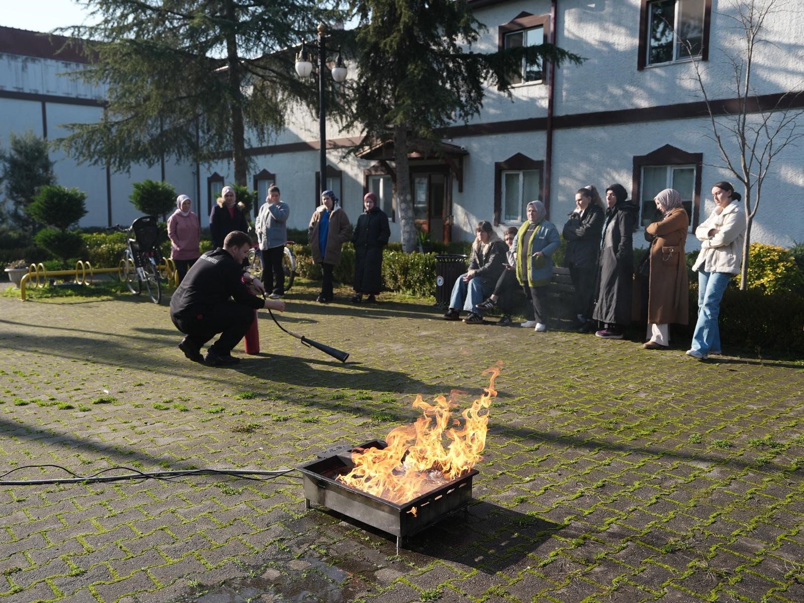 Eğitimin uygulamalı bölümünde ise yangın söndürme tüpünün doğru ve güvenli kullanımı anlatılarak, kursiyerlere birebir müdahale pratiği yaptırıldı. Olabilecek yangın durumlarında bilinçli ve doğru hareket etmenin önemini öğrenen kursiyerler, eğitimden duydukları memnuniyeti dile getirdi.