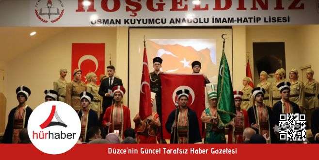 Kut´ül Amare Zaferi´nin 107. yıl dönümü dolayısıyla Osman Kuyumcu Anadolu İmam Hatip Lisesi öğretmen ve öğrencileri tarafından duygu dolu bir anma programı düzenlendi.Düzce Osman Kuyumcu Anadolu İmam Hatip Lisesi öğretmenleri ve öğrencileri tarafından hazırlanan ve izleyicilerden büyük beğeni toplayan programda, duygu dolu anlar yaşandı. Protokol üyelerinin öğretmenleri ve öğrencileri tebrik etmelerinin ardından, çekilen hatıra fotoğrafı ile sona erdi.Etkinliğe; Vali Yardımcısı Yakup Tatoğlu, Rektör Yardımcısı Prof. Dr. Abdullah Taşkesen, AK Parti Düzce İl Başkanı Hasan Şengüloğlu, İl Genel Meclis Başkanı Fazlı Koç, Milli Eğitim Müdürü Tamer Kırbaç, Tarım Müdür Vekili Hüseyin Dikman, protokol üyeleri, öğrenci velileri ve çok sayıda misafir katılım sağladı.