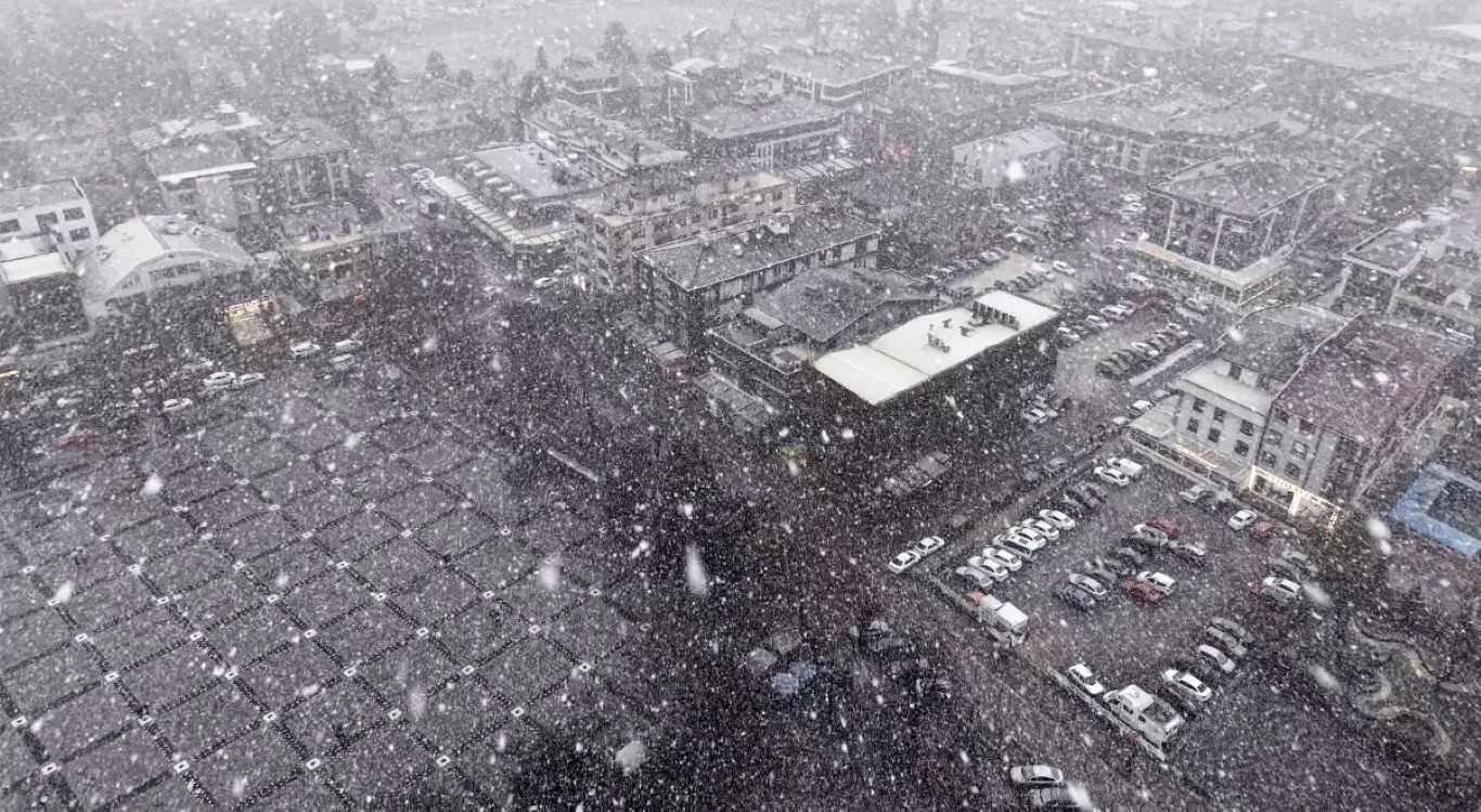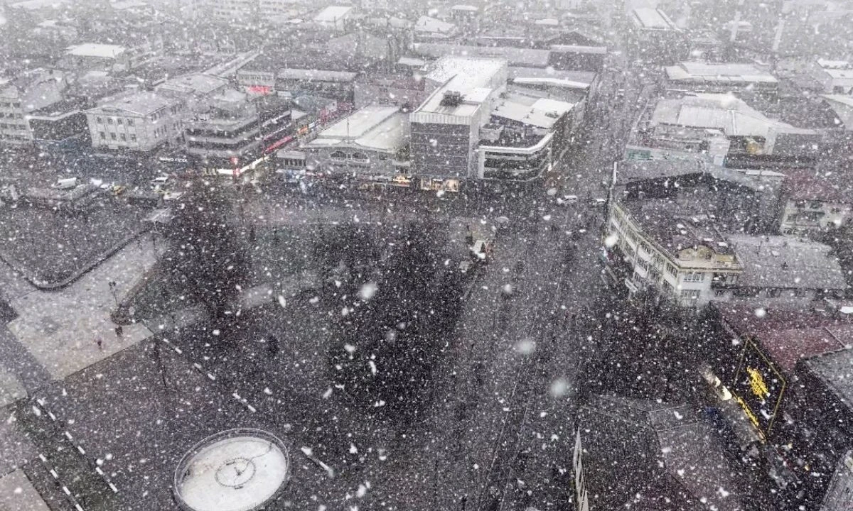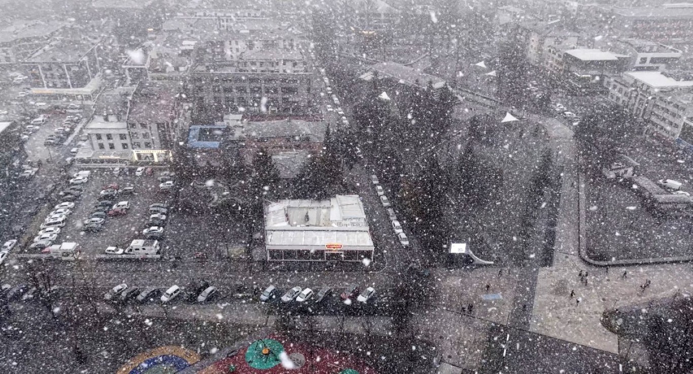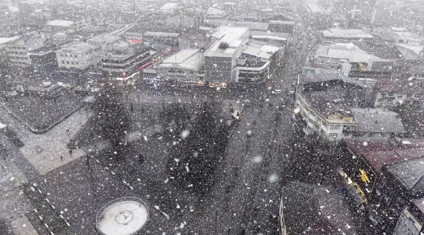 Lapa lapa yağan kar havadan görüntülendi