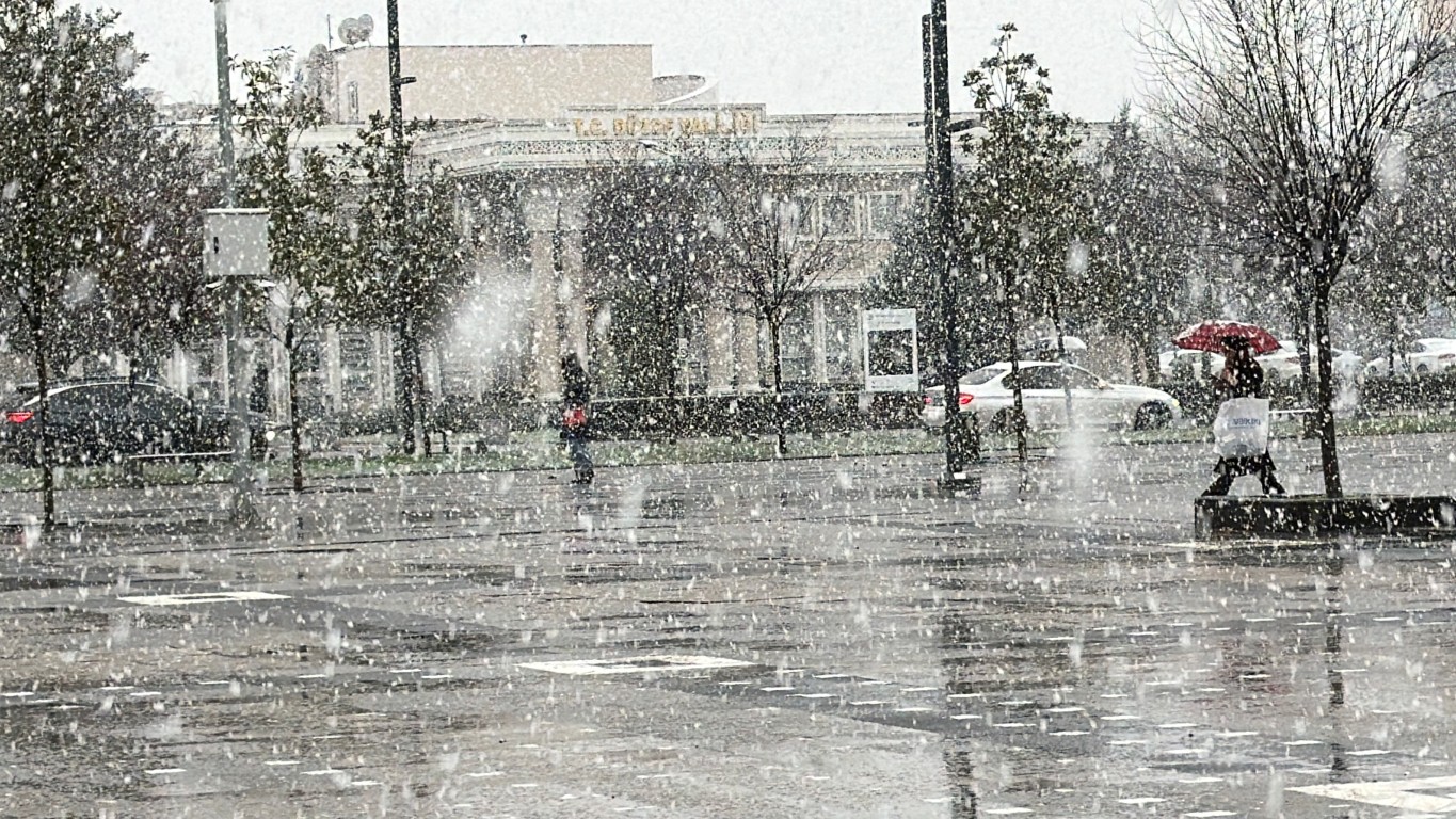 Düzce’de etkili olan kar yağışı kenti beyaz bir örtüyle kapladı.