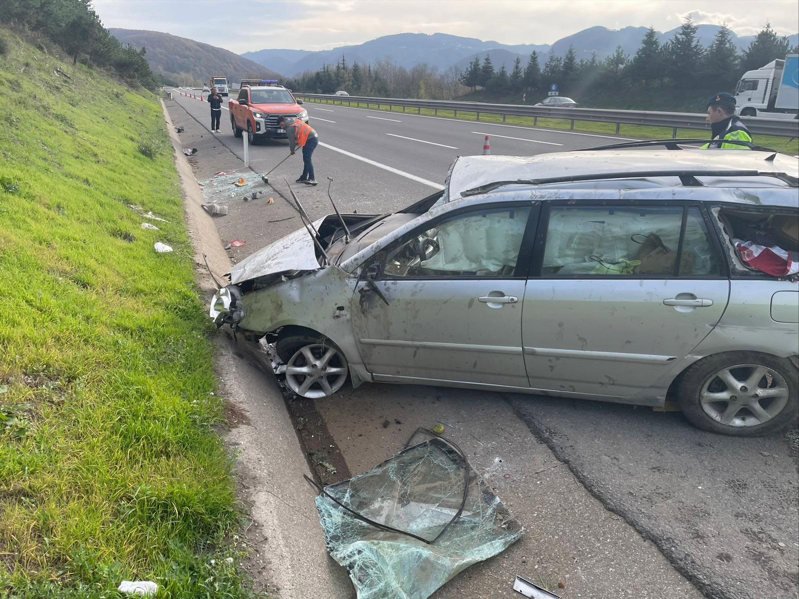 Anadolu Otoyolu Düzce geçişinde lastiği patlayan otomobil bariyere çarparak takla attı.