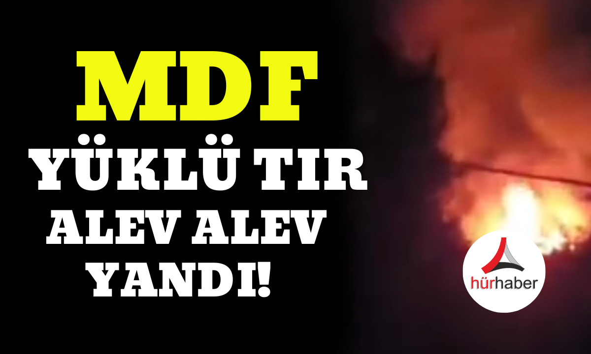 Düzce'de MDF yüklü tır otoyolda alev alev yandı.
