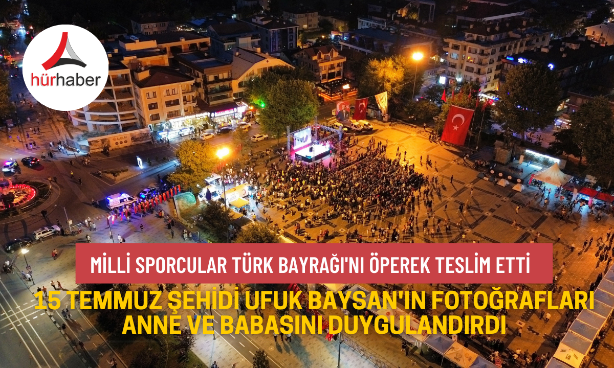 Hain darbe girişiminde Ankara'da bulunan Özel Harekat Daire Başkanlığı'ndaki bombalı saldırıda şehit düşen Düzceli Emniyet Müdürü Ufuk Baysan'ın operasyonlarda çekilen fotoğrafları katılımcılara gösterildi. Alanda bulunan şehidin annesi Hanife Baysan ile babası Ramazan Baysan, fotoğraflar karşısında duygu dolu anlar yaşayarak gözyaşlarına teslim oldu.Programda milli sporcular Düzce Valisi Selçuk Aslan'a Türk Bayrağı'nı öperek teslim ederken, Vali Aslan da bayrağı öperek teslim aldı.