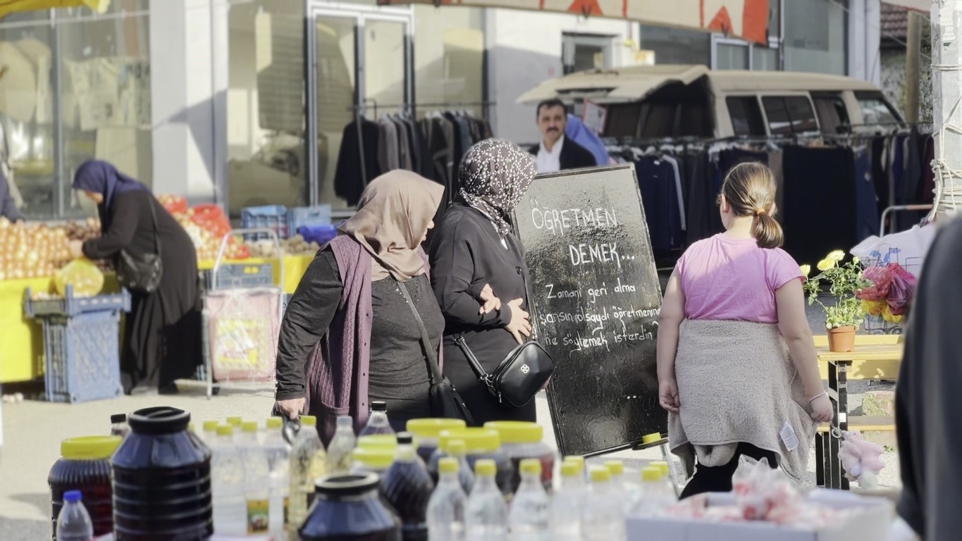 Müdürlük çalışanları, semt pazarına giderek vatandaşların öğretmenlik mesleğine ilişkin görüşleri alındı, özellikle şehit öğretmenler de hazırlanan video da unutulmadı.