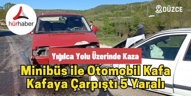 Düzce Yığılca Karayolu üzerinde minibüs ile otomobilin kafa kafaya çarpıştığı trafik kazasında araçlarda bulunan 5 kişi yaralandı
