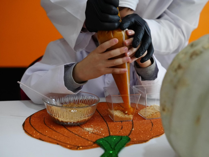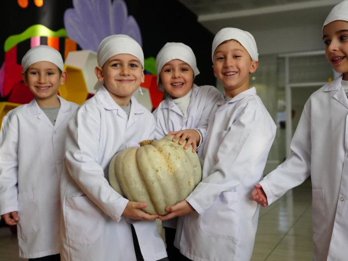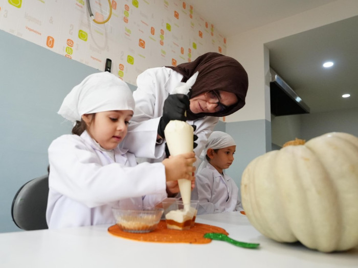Minikler evlerinden yiyecekler getirdi, hazırladıkları kostümlerle defile yaptı. Çocuk Üniversitesi’nin minik şefleri ise bal kabaklı magnolia yaparak afiyetle yedi.